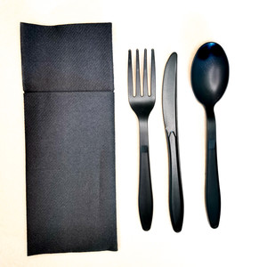 Forchetta, coltello e cucchiaio in materiale BIo e tovagliolo